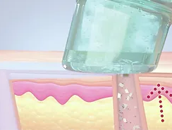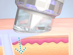Einschleusen von Antioxidantien, Vitaminen und Hyaluronsäure durch den Vortex-Aufsatz, auf Wunsch auch eines hochkonzentrierten Anti-Aging-Serums (DermaBuilder).